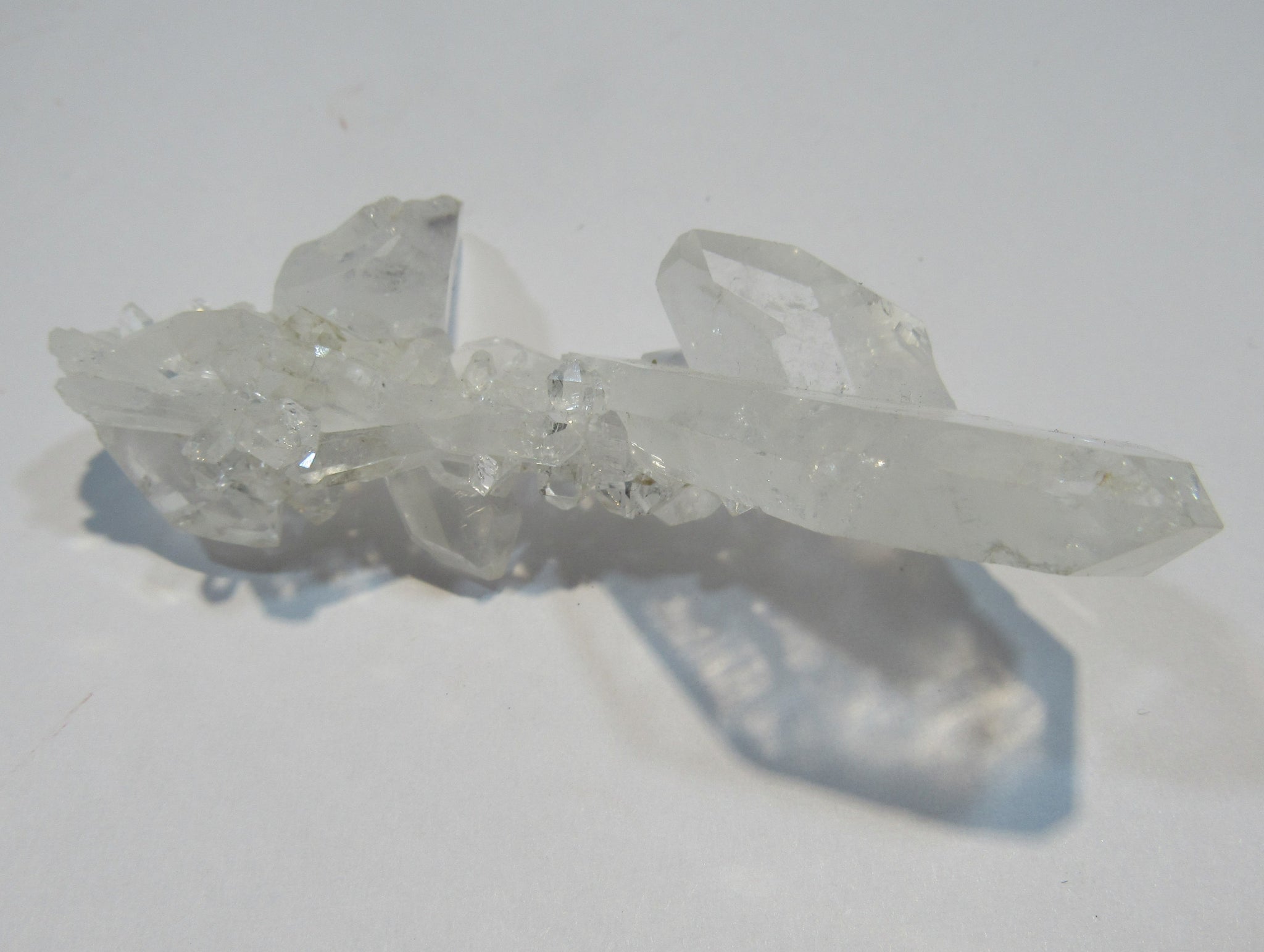 • Feiner Bergkristall, wenig Einschlüsse, mit durchlaufenden Faden